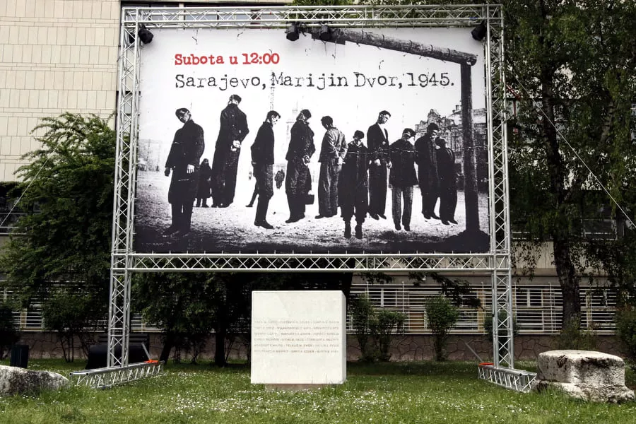 SARAJEVO, (Patria) - Savez antifašista i boraca Narodnooslobodilačkog rata u Bosni i Hercegovini će u Sarajevu u subotu u 12 sati organizovati komemorativni mimohod u znak sjećanja na građane ubijene tokom trajanja Nezavisne Države Hrvatske na ovim prostorima. Danas je ispred Filozofskog fakulteta u Sarajevu postavljena slika obješenih građana na Marijin Dvoru 1945. godine. Režim je tada objesio 55 antifašista.