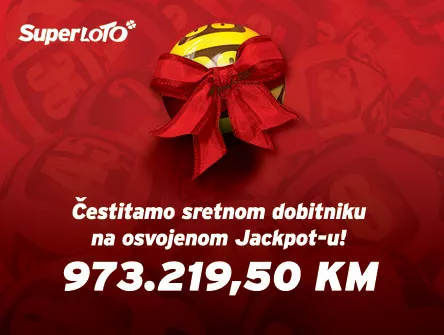 ŽEPČE, (Patria) - U subotu navečer, 15. februara 2020. godine u 13. kolu igre SuperLOTO, u emisiji koja se emitira uživo, pogođena je dobitna kombinacija od šest brojeva koja je sretnom igraču donijela dobitak od 973.219,50 KM.