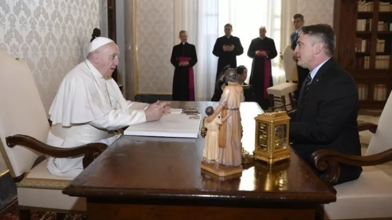 Predsjedavajući Komšić upoznao je Papa Franju o aktuelnoj političkoj situaciji u Bosni i Hercegovini. Razgovarano je o odnosima Svete stolice i Bosne i Hercegovine, te je naglašeno da će Vatikan i dalje pružati konstruktivnu političku podršku Bosni i Hercegovini kao multietničkoj državi, te podršku njenom putu ka euroatlanskim integracijama.