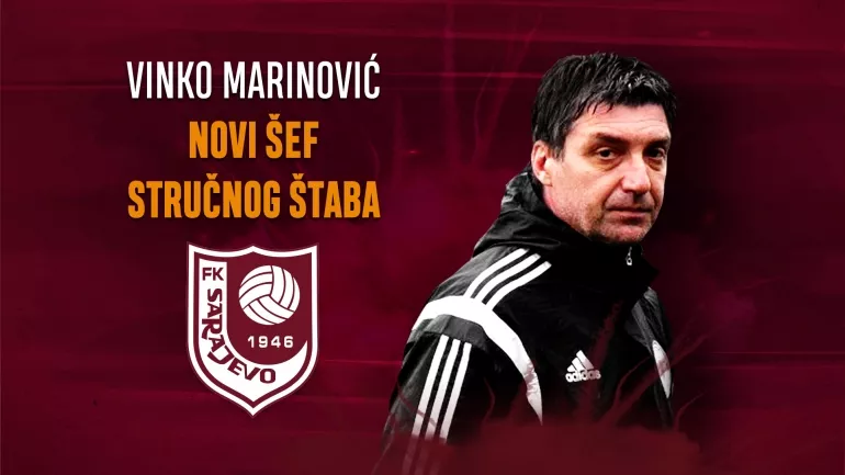 (Patria) - Bivši selektor omladinske reprezentacije Bosne i Hercegovine, Vinko Marinović, zvanično je novi šef stručnog štaba Fudbalskog kluba Sarajevo. Nakon što su uspješno regulisane sve administrativne procedure, Marinović je napustio reprezentativni angažman, te preuzeo klupu Bordo tima.