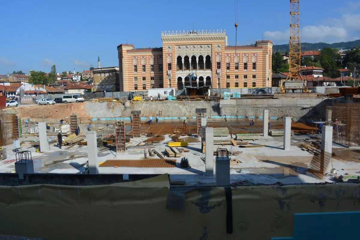 Prema onome što se može vidjeti na terenu, radovi odlično napreduju i skoro je završena etaža -1. Danas se na gradilištu skida oplata sa 2/3 ploče i postavlja armatura na preostaloj 1/3, a plan je da ploča bude završena ove sedmice. Uporedo se radi stepenište između nivoa 0 i -1.