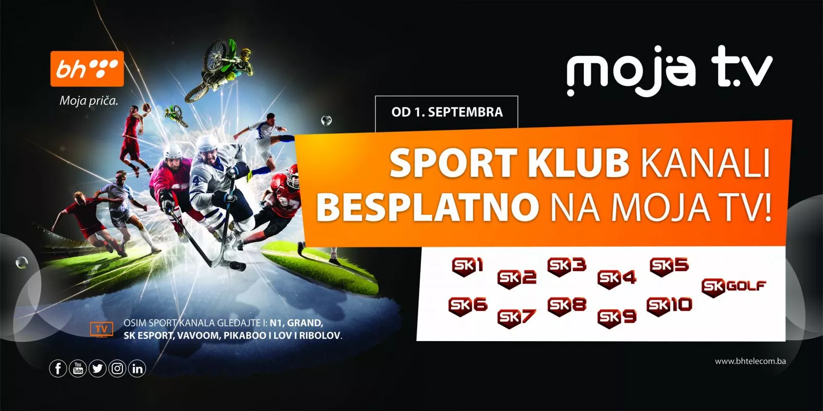 "Slijedeći višegodišnju poslovnu praksu da svojim korisnicima kontinuirano poboljšava usluge, kreira nove komunikacijske mogućnosti i servise, te pruža nove pogodnosti i i benefite, BH Telecom je korisnicima Moja TV usluge omogućio besplatno praćenje kanala Sport Klub u narednom promotivnom periodu od nekoliko mjeseci. Uvrštavanjem Sport Klub kanala u ponudu, korisnici Moje TV će biti u toku sa brojnim evropskim i svjetskim sportskim sadržajima iz svijeta nogometa, košarke, rukometa, tenisa, moto sporta, hokeja i američkog nogometa te tako, uz BH Telecom Premijer ligu, Eurosport i ArenaSport kanale, imati najatraktivniju ponudu sportskih sadržaja. BH Telecom će i u narednom periodu unaprijeđivati ponudu sadržaja Moja TV usluge u cilju povećanja zadovoljstva korisnika“, izjavio je Sedin Kahriman, v.d. generalnog direktora BH Telecoma.