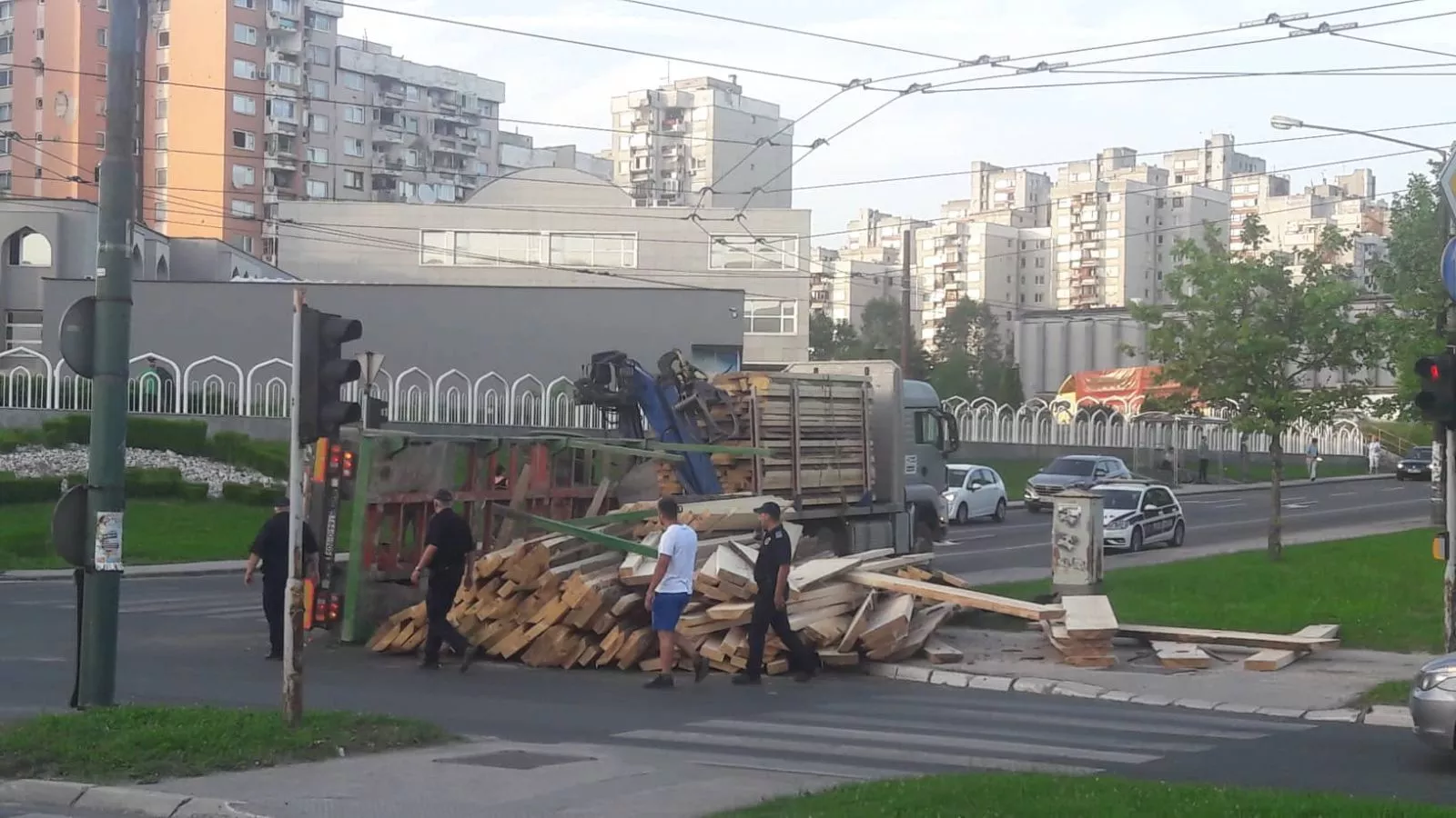 Prilikom skretanja druga prikolica se prevrnula nakon čega su se rasule daske po cesti. Saobraćaj se odvija otežano.