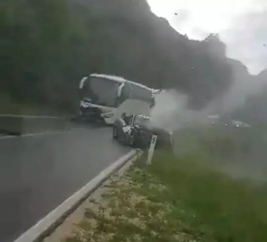 U snimku koji se pojavio na društvenim mrežama vidi se da kiša pada, a automobil koji se sudario s autobusom prešao je dijelom u suprotnu traku. Prednji dio automobila potpuno je uništen, a muškarac je od zadobijenih povreda preminuo na licu mjesta.