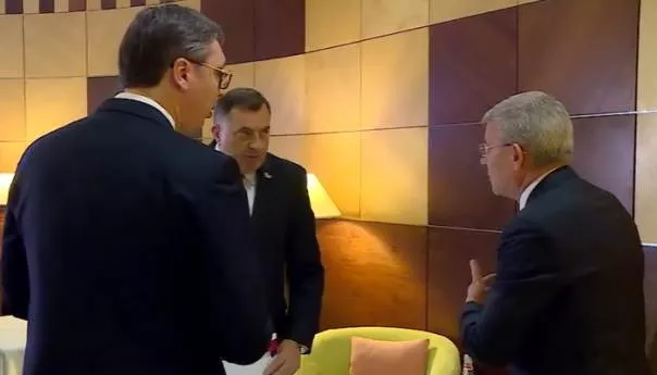 Kamere su zabilježile raspravu predsjedavajućeg i člana Predsjedništva BiH o formiranju vlasti na državnom nivou te sporenja oko godišnjeg nacionalnog programa za NATO, dok se srbijanski predsjednik želio informisati oko napretka u pregovorima, prenosi N1.