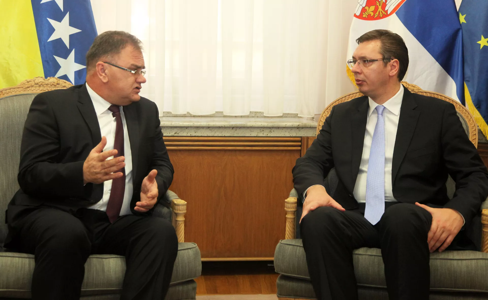 BEOGRAD, (Patria) - Predsjednik Srbije Aleksandar Vučić je na sastanku sa članom Predsjedništva BiH Mladenom Ivanićem istakao potrebu jačanja političkih odnosa i ekonomske saradnje Srbije i BiH, kako je rekao, u duhu dobrosusjedstva i interesa kako građana Srbije, tako i sva tri konstitutivna naroda u BiH, a naročito srpskog naroda u RS.