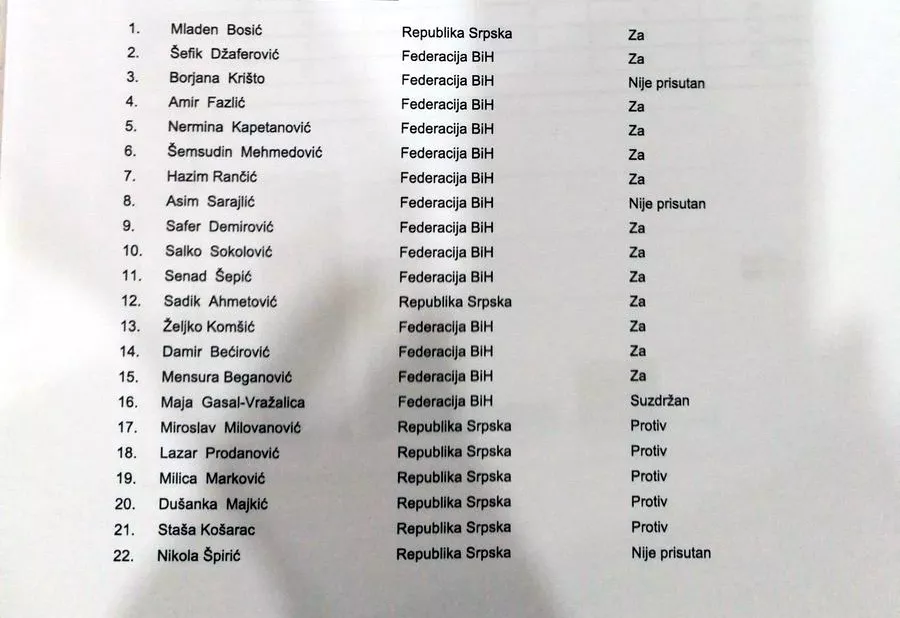 Pandurević je na Twitteru objavila i listu državnih zastupnika koji su podržali kao i listu onih koji su odbili podržati prijedlog „posmatrača u štamparijama gdje se štampaju glasački listići.“