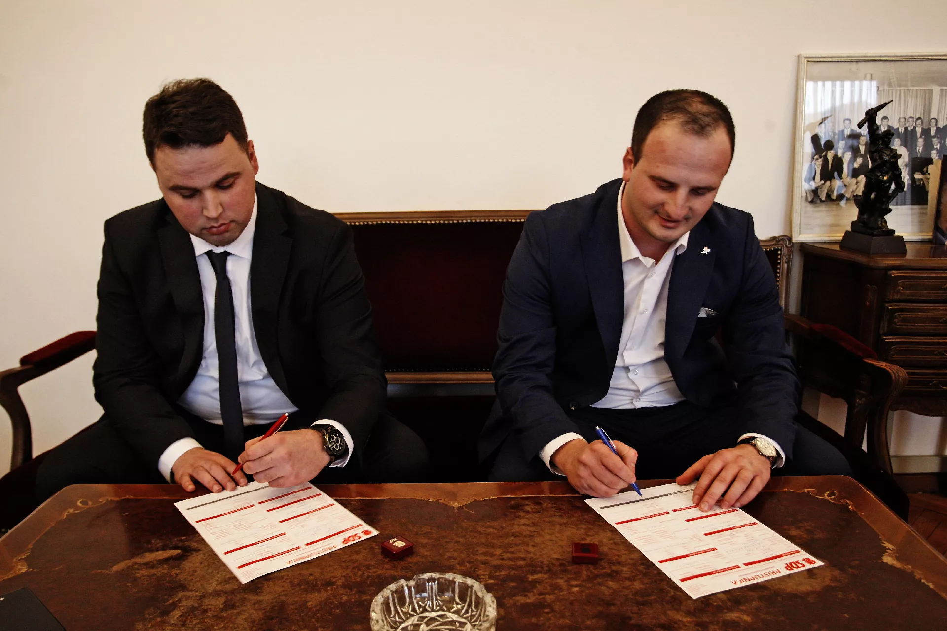 Predsjednik Socijaldemokratske partije Bosne i Hercegovine Nermin Nikšić, simbolično je uručio članske iskaznice Luki Ragužu, poznatom aktivisti iz Stoca, i Mariju Šimoviću, mladom poduzetniku iz Čapljine, koji su postali novi članovi SDP-a.