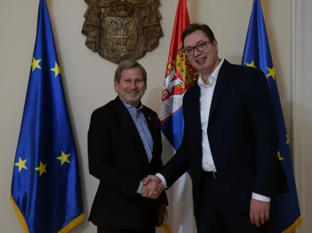 BEGRAD, (Patria) - Predsjednik Srbije Aleksandar Vučić i Evropski komesar za pregovore o proširenju Johanes Han razgovarali su u petak navečer u Beogradu o procesu evropskih integracija i napretku Srbije na tom putu.