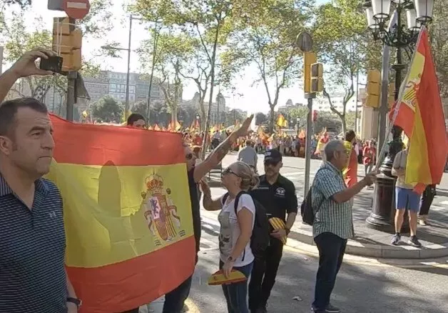 Demonstranti okupljeni na glavnom gradskom trgu u Barseloni nose španske i katalonske zastave, a neki od njih uzvikuju "Katalonija je Španija" i pozivaju na hapšenje katalonskog lidera Karlesa Pućdemona.
