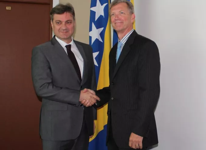 Predsjedavajući Vijeća ministara BiH Denis Zvizdić primio je danas u nastupnu posjetu novog šefa Misije OSCE u BiH, ambasadora Brucea Bertona i čestitao mu na odgovornoj funkciji koju će obavljati u Bosni i Hercegovini, prenosi agencija Patria.