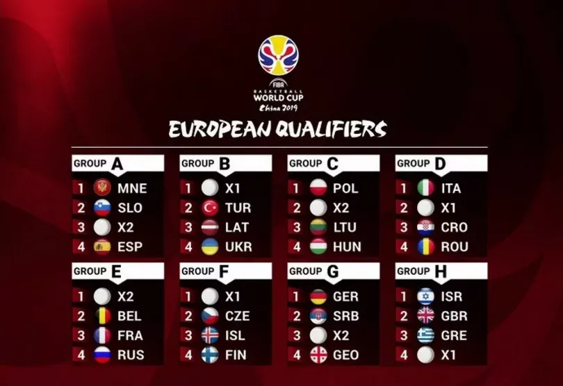 U grupi A su Crna Gora, Slovenija i Španija, u grupi C su Poljska, Litvanija i Mađarska, u grupi E su Belgija, Francuska i Rusija, dok su u grupi G Njemačka, Srbija i Gruzija.