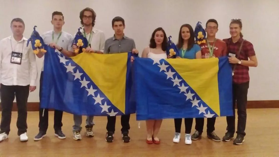 Tim BiH: Zlatko Salko Lagumdžija, Emin Mrkonja i Amar Kurić iz Međunarodne škole u Sarajevu, Azur Đonlagić iz Opće Gimnazije KŠC “Sv.Franjo” iz Tuzle, Adisa Bolić sa Sarajevo koledža i Tijana Babić iz banjalučke gimnazije.