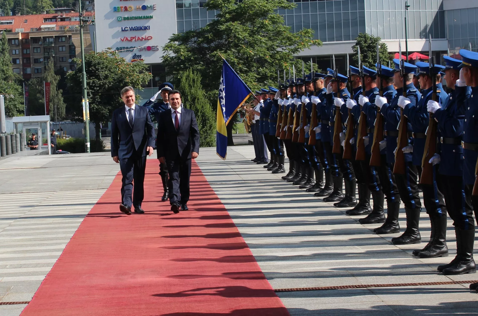 Svečanim dočekom ispred zgrade Parlamenta BiH počela je službena posjeta predsjednika Vlade Makedonije Zorana Zaeva BiH koji je u subotu stigao u Sarajevo. Njegov domaćin je predsjedavajući Vijeća ministara BiH Denis Zvizdić, a bit će upriličeni sastanci zvaničnika Makedonije sa zvaničnicima Bosne i Hercegovine, te potpisivanje dva sporazuma, piše agencija Patria.