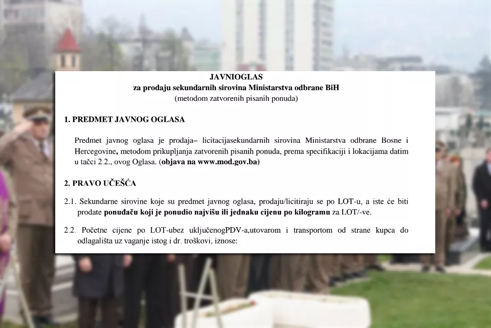 Ministarstvo odbrane Bosne i Hercegovine otvorilo je oglas za prodaju mesinga i drugih sirovina čija vrijednost prelazi 2,5 miliona KM, a koji bi već na samom startu mogao biti problematičan, zbog niza nelogičnosti u samom pozivu.