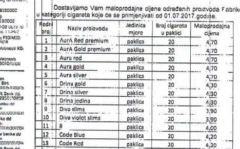 U nastavku pogledajte novi cjenovnik cijena na tržištu BiH od mjeseca jula.