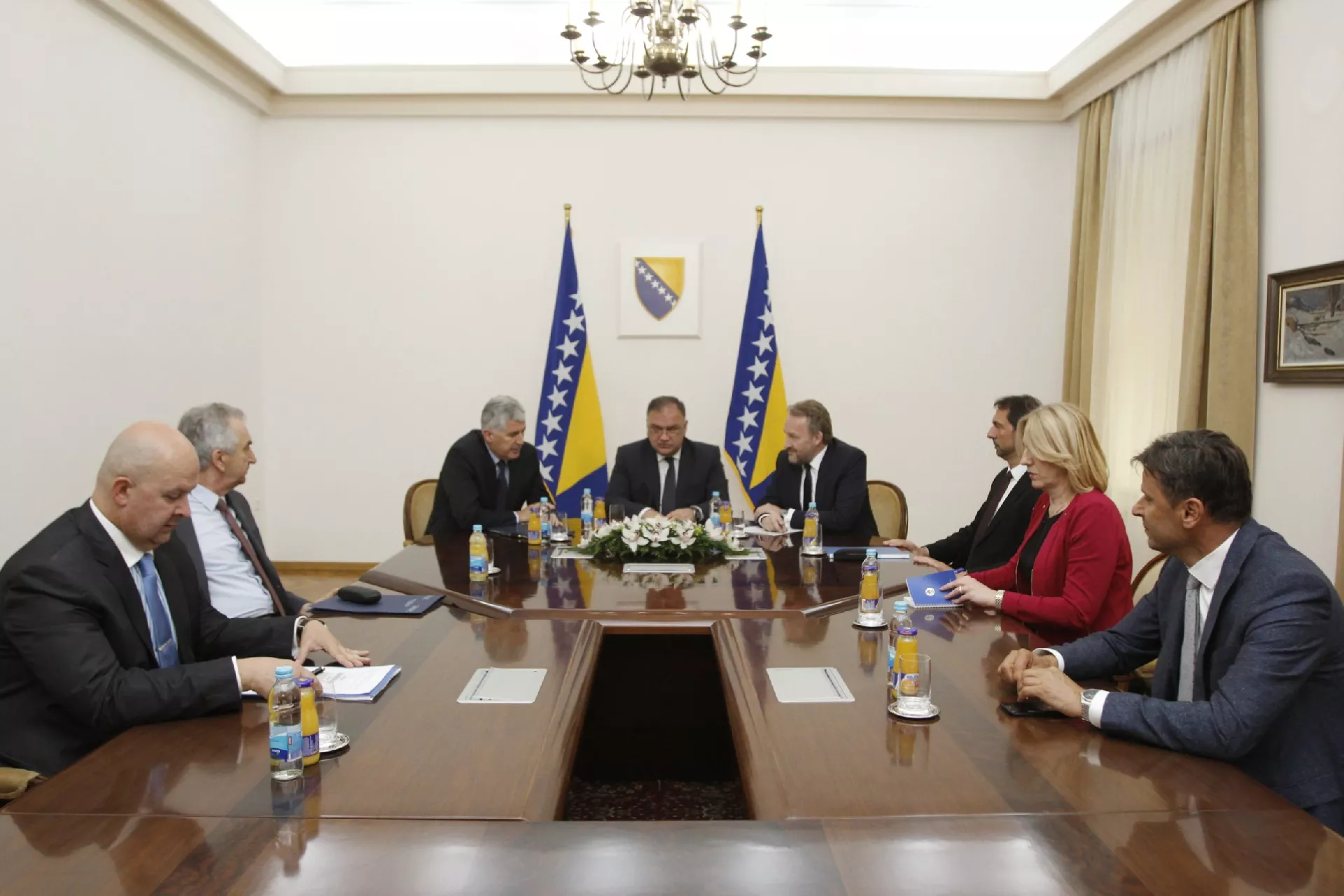 Na sastanku u zgradi Predsjedništva BiH u Sarajevu prisustvuje i direktor Direkcije za evropske integracije Edin Dilberović te Nerima Rifatbegović, savjetnica predsjedavajućeg Vijeća ministara BiH Denisa Zvizdića.