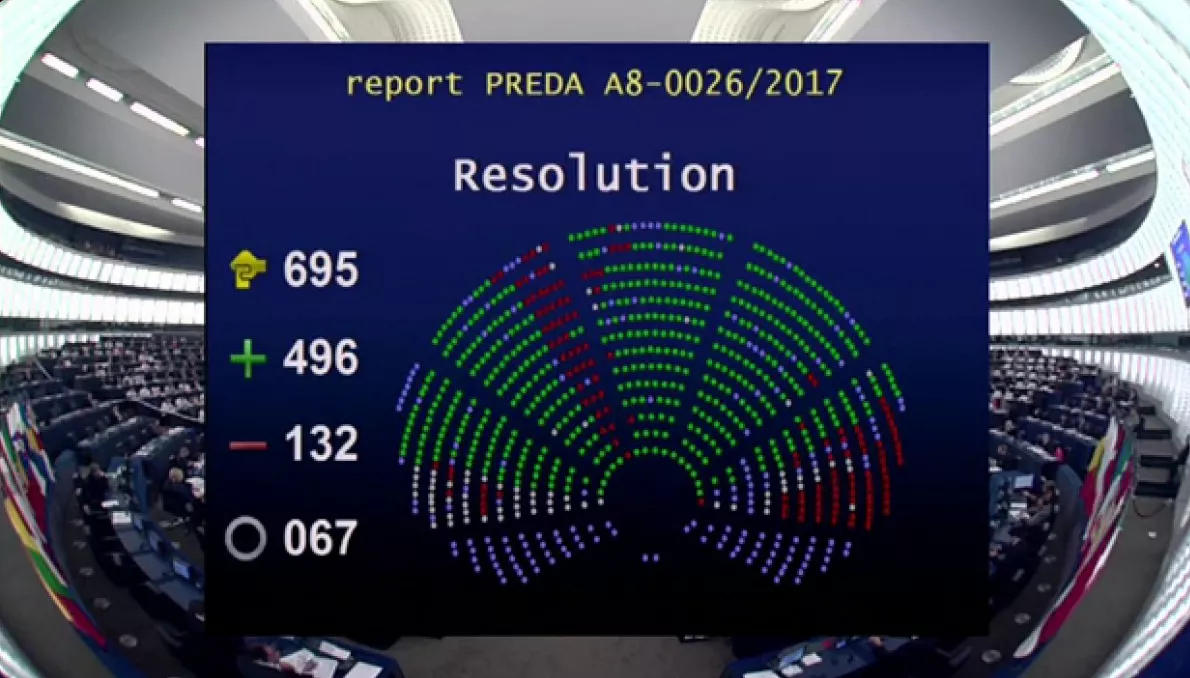 Od 695 parlamentaraca za je glasalo 496, protiv 132, a 67 ih je bilo suzdržanih. U Rezoluciji se apeluje da BiH prevaziđe svoje etničke i političke podjele na putu prema članstvu u EU kako bi proces ocjenjivanja aplikacije za članstvo u Uniji bio uspješan. BiH je aplikaciju predala na današnji dan 2016. godine.