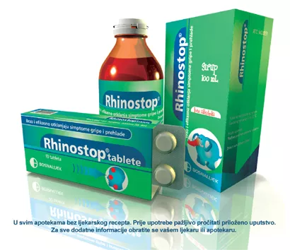Rhinostop® je dostupan u svim apotekama bez ljekarskog recepta u obliku sirupa za djecu stariju od 6 godina i tableta za odrasle. Za više informacija posjetite web stranicu: http://rhinostop.ba/
