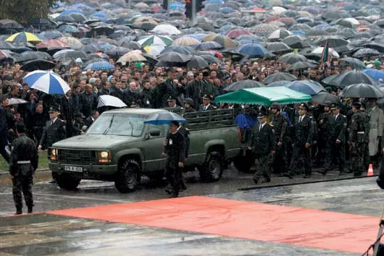 Spuštanjem tijela rahmetlije u mezar, koje je popraćeno paljbom počasnog stroja Vojske FBiH i topovskom paljbom, okončan je “ovosvjetski život” Alije Izetbegovića.