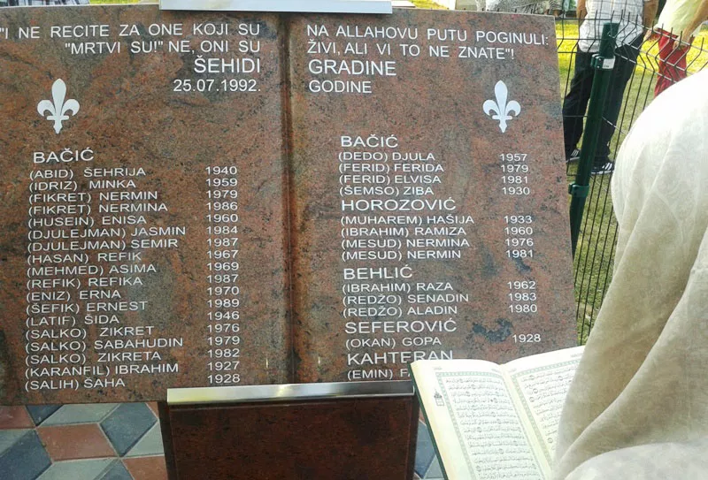 U zaseoku Gradina, mjesne zajednice Zecovi kod Prijedora, danas je, u prisustvu preživjelih članova porodica te nekoliko stotina građana Prijedora, otkrivena spomen ploča u znak sjećanja na 32 žrtve, ubijene na današnji dan 25. jula 1992. godine od Vojske Republike Srpske. Svi ubijeni su žene i djeca iz Gradine, prenosi Patria.