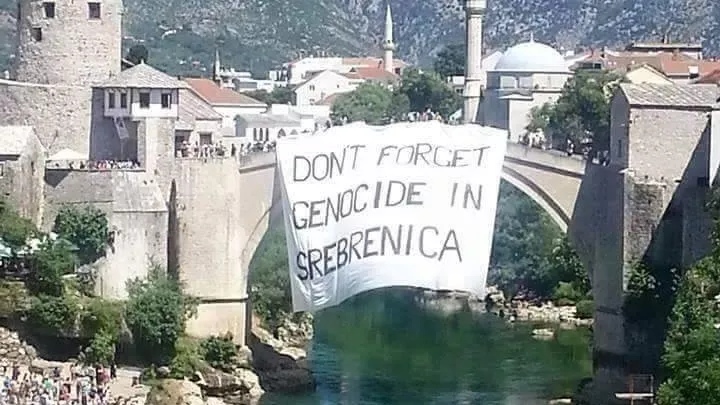Već danas, skakači i kako to Mostarci vole reći „raja iz mahale“ postavili su na Stari most ogromni transparent sa porukom“ Don't forget genocide in Srebrenica“.