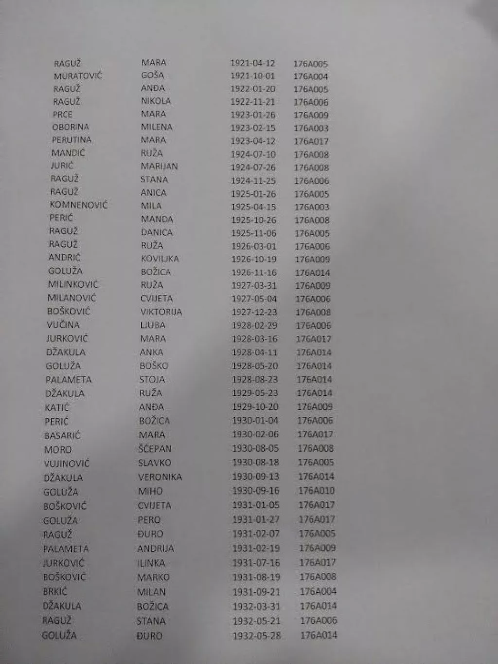 Nažalost, birački spisak za izbornu jedinicu 176 (Stolac) a za koji je odgovoran OIK u mnogo konkretnih slučajeva nije ažuriran. Vjerujući da ovi propusti nisu namjerni, nego rezultat Vaše neodgovornosti i nesposobnosti, a sa iskrenom željom da Vam pomognem, dostavljam Vam podatke od 100 preminulih osoba koje se nalaze na biračkom spisku za izbornu jedinicu 176.