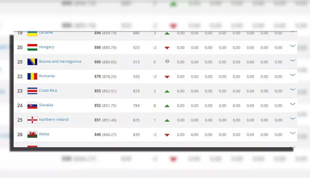 Na posljednjoj FIFA rang listi koja je objavljena danas na službenoj stranici, BiH je na 20. mjestu sa 886 bodova. Od zemalja regiona na 27. mjestu je Hrvatska, na 54. Srbija, na 57. Slovenija, 90. Crna Gora, piše agencija Patria.