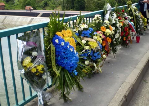 Nekoliko stotina građana danas su na mostu položili vijence i bacili cvijeće u rijeku.