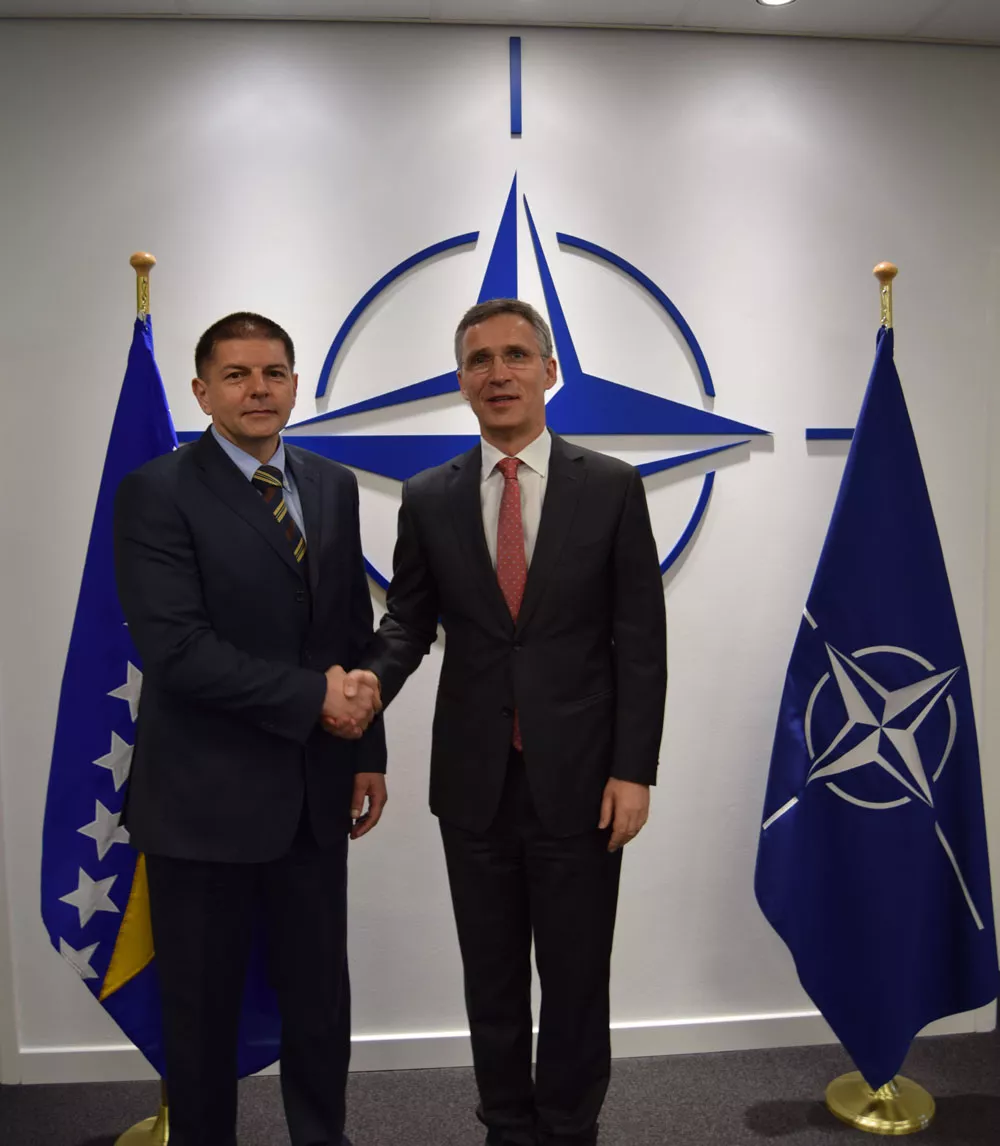 Šef Misije Bosne i Hercegovine pri NATO ambasador Almir Džuvo je 25. aprila 2016. godine predao akreditivna pisma generalnom sekretaru Sjevernoatlantskog saveza (NATO) Jensu Stoltenbergu. Ceremonija predaje akreditivnih pisama održana je u privatnom uredu generalnog sekretara NATO, prenosi bh. novinska agencija Patria.