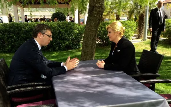 Kolinda Grabar-Kitarović i srbijanski premijer Aleksandar Vučić sastali su se na marginama Međunarodnog sajma u Mostaru, a razgovaralo se o bilateralnim odnosima dvije države, no ne i o pregovorima Srbije o ulasku u Evropsku uniju, prenosi novinska agencija Patria.