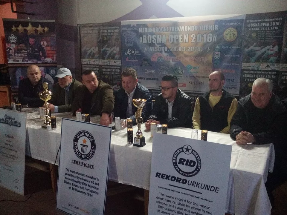 Osnivač, direktor i trener Taekwondo Kolektiva Bosna Edin Kajević – Kaja najavio je Internacionalni turnir koji će se održati u sportskoj dvorani „Mladost“ Visoko 26. marta 2016. u terminu od 08. do 20 sati, a potom su mu dodijeljeni certifikata za oborene Ginisove i svjetske rekorde u razbijanju kokosovih oraha u minuti laktom, te razbijanju punih limenki s pićem od pola litra, također laktom.