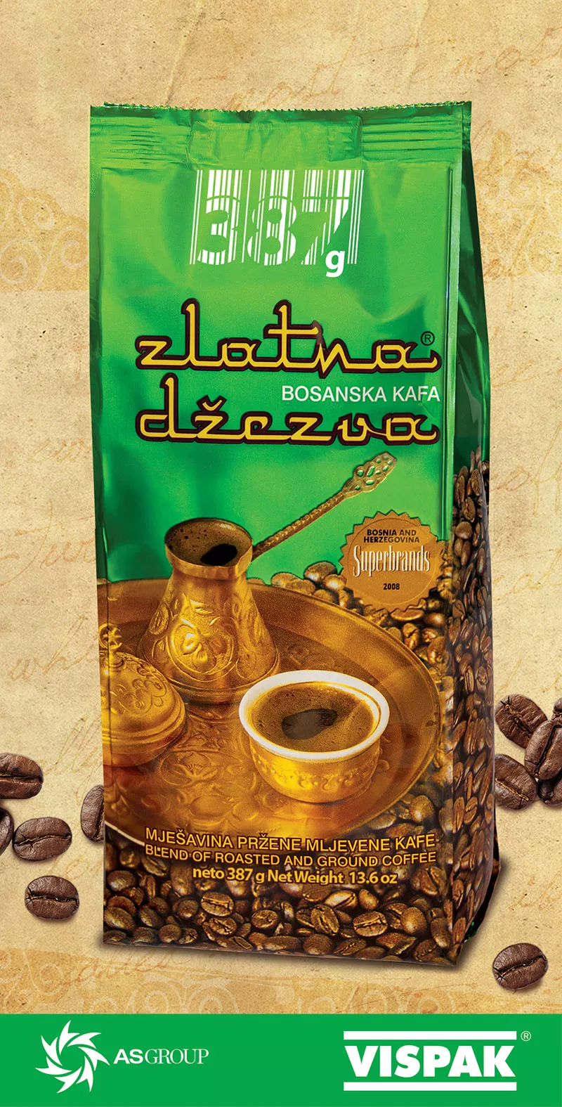 Bosanskohercegovačka prehrambena industrija Vispak d.d. Visoko plasirala je na tržište novu “Zlatnu džezvu 387”. Uz postojeća pakovanja Zlatne džezve od 100 gr., 200 gr., 500 gr. i 1.000 gr. (izvoz), Zlatna džezva će biti dostupna u posebno dizajniranom pakovanju od 387 grama, prenosi bh. novinska agencija Patria.