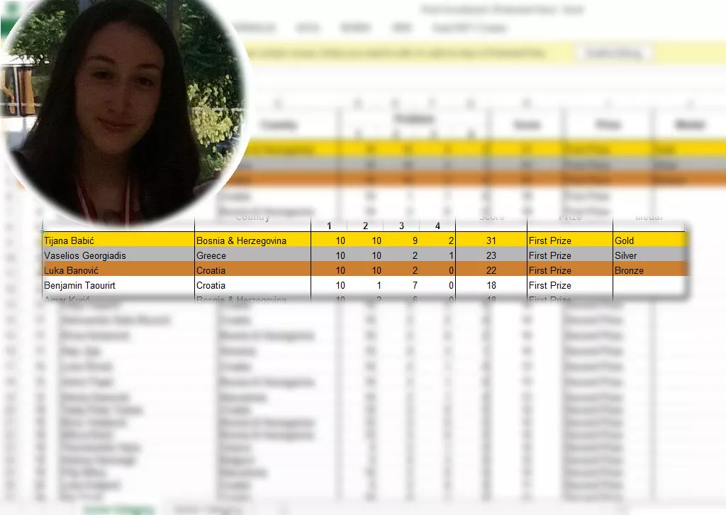 Među 113 učesnika srednjih škola iz cijele Evrope i SAD-a učenica drugog razreda iz banjalučke gimnazije Tijana Babić osvojila je maksimalan broj brodova i vrijedno zlato. Drugo mjesto pripalo je Grku Vaseliosu Georgiadisu a treće matematičaru iz Hrvatske Luki Banoviću.