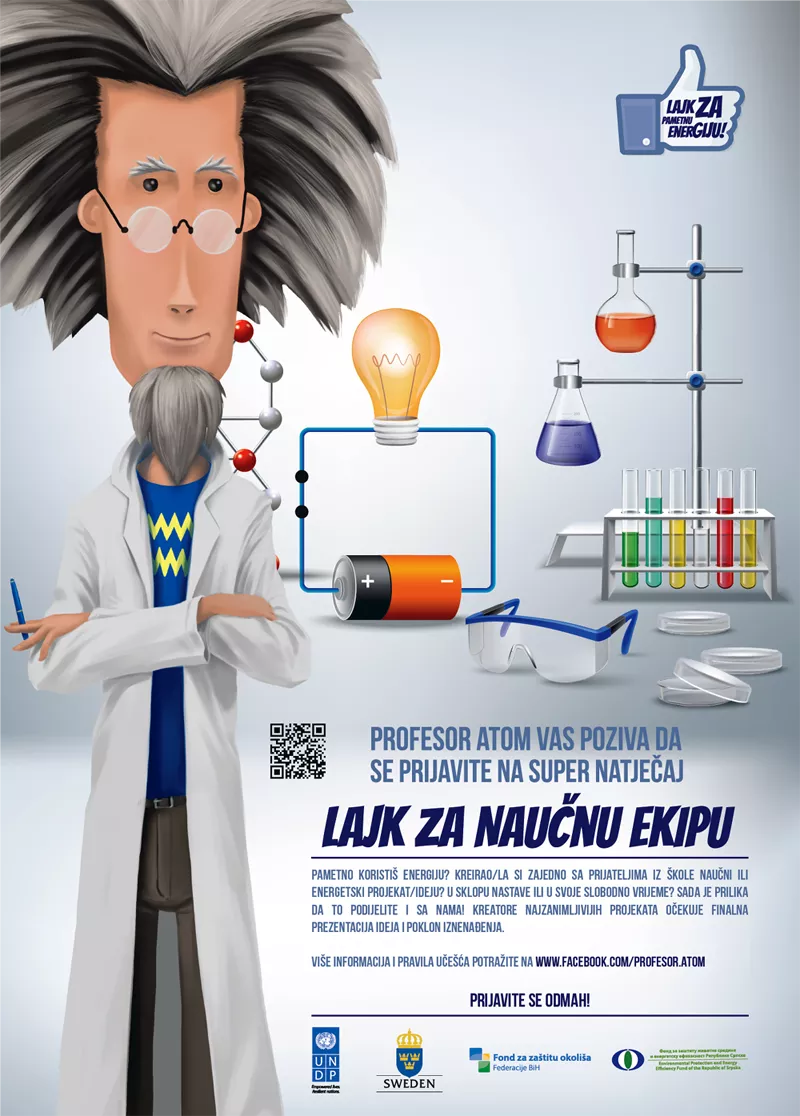 UNDP u saradnji sa partnerima u okviru projekta ”Zeleni ekonomski razvoj” organizira konkurs ”Lajk za naučnu ekipu” u kojem mogu učestvovati svi zainteresirani učenici osnovnih i srednjih škola na području Bosne i Hercegovine, koji osmisle zanimljiv naučni grupni projekat na temu pametnog korištenja energije, energetske efikasnosti, obnovljivih izvora energije ili zaštite okoliša, prenosi bh. novinska agencija Patria.
