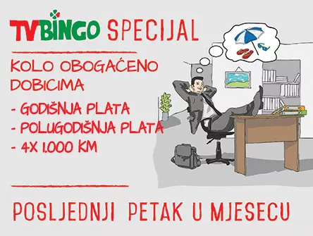 Lutrija BiH posljednjeg oktobarskog petka organizuje Specijalno kolo igre na sreću TVBINGO. Specijal redovnog kola prepoznatljiv je po većoj vrijednosti deseteraca i peteraca te po dodatnim novčanim dobicima, prenosi novinska agencija Patria.