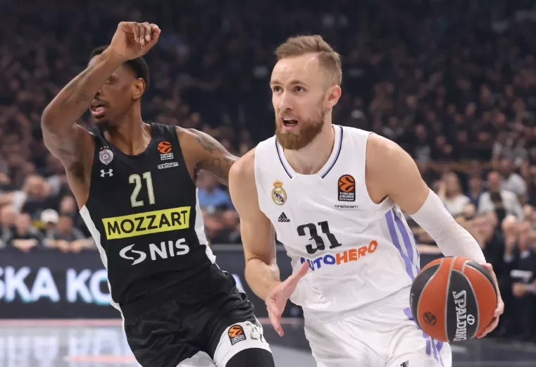 Crno-bijeli su ga dobili sa 95:80, pa su došli do velikih 2:0 u seriji četvrtfinala, a večeras su imali prvu meč loptu za plasman na Final Four u Kaunasu. Partizan je morao bez dvoje najboljih igrača Puntera i Lessorta, dok su gostima iz Madrida nedostajali također suspendovani Deck i Yabusele.