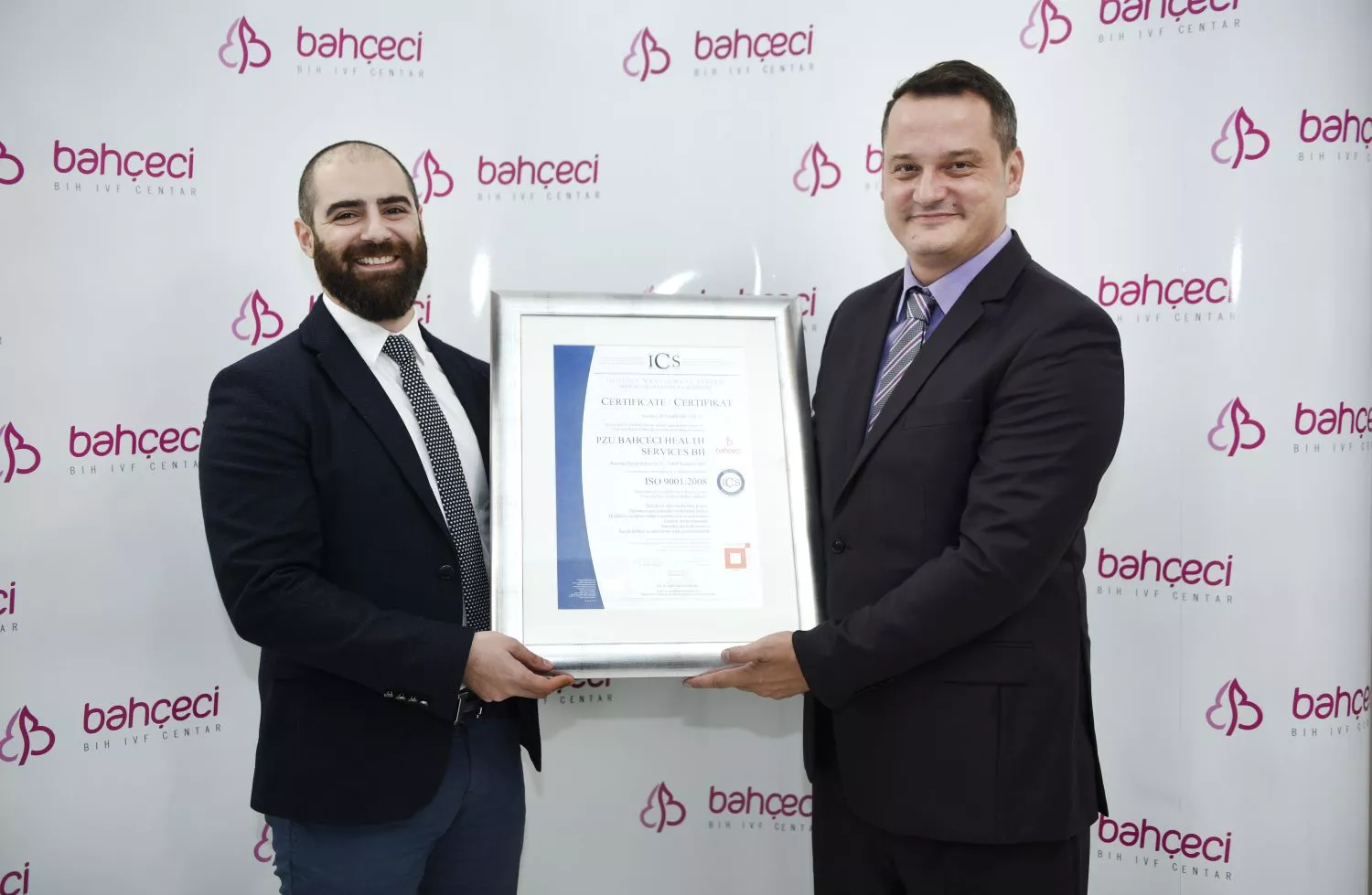 Bahceci centar za ginekologiju, neplodnost i vantjelesnu oplodnju (IVF) od srijede 7. oktobra 2015. godine prva je klinika za vantjelesnu oplodnju u Bosni i Hercegovini kojoj je dodijeljen standard za sistem upravljanja kvalitetom ISO 9001:2008, prenosi bh. novinska agencija Patria.