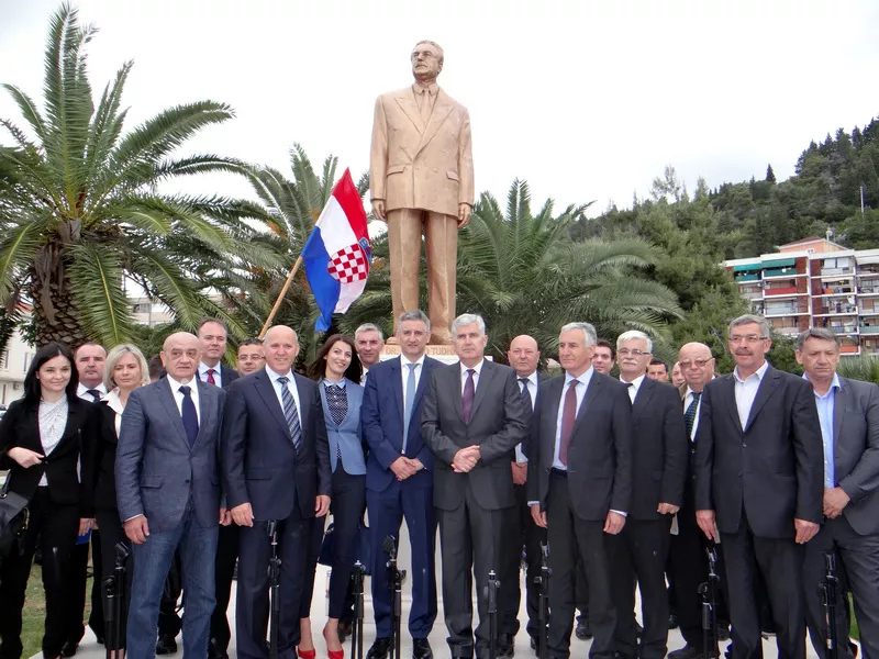Član Predsjedništva BiH Dragan Čović prisustvovao je otkrivanju spomenika Franji Tuđmanu u Pločama, prenosi novinska agencija Patria.