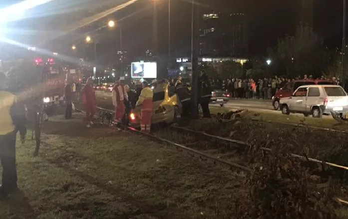 Automobil je od siline udara završio na tramvajskim šinama.