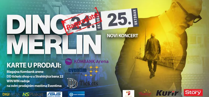 Svi koji nisu uspjeli da na vrijeme nabave svoju ulaznicu za 24. oktobar, karte za drugi koncert mogu nabaviti na nekoj od prodajnih lokacija: blagajna Kombank Arene, u svim Win Win radnjama, na svim prodajnim mestima DD tickets-a i Eventima, kao i online na www.ddtickets.rs i www.eventim.rs, saopćeno je iz menadžmenta Dine Merlina.