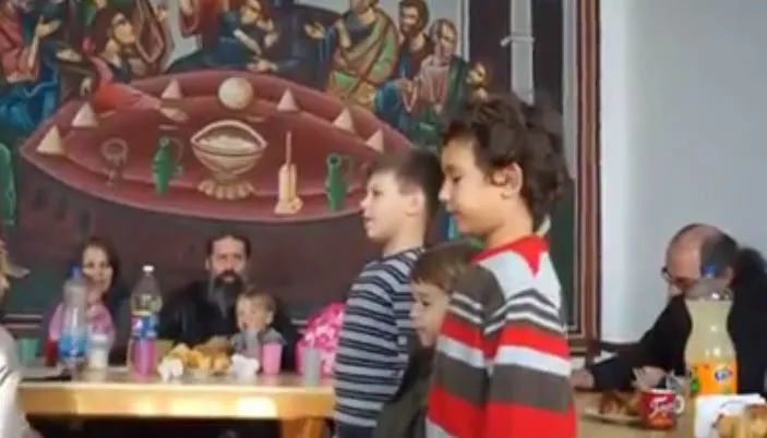 Trojica dječačića u pjesmi koju izvode zajedno sa sveštenicima veličaju četnike, srpskog vođu Dražu Mihajlovića i njegove zločinačke podvige, četniču ikonografiju...