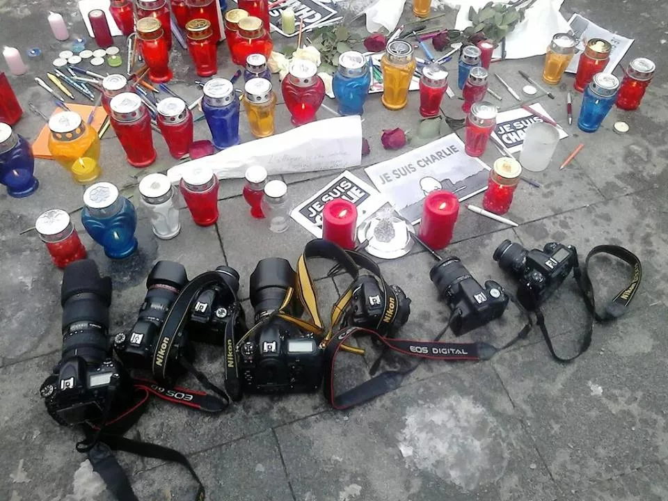Paljenjem svijeća i simboličnim ostavljanjem olovaka i foto-aparata, prisutni su odali počast novinarima sedmičnika Charlie Hebdo koji su ubijeni u napadu terorista.