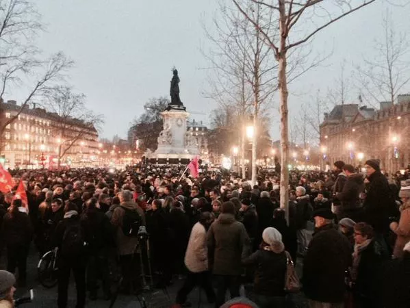 Na Trgu Republike u Parizu okupilo se nekoliko hiljada građana koji izražavaju protest zbog današnjeg terorističkog napada na redakciju satiričnog magazina Charlie Hebdo gdje je ubijeno 10 novinara i dva policajca, piše bh. novinska agencija Patria.