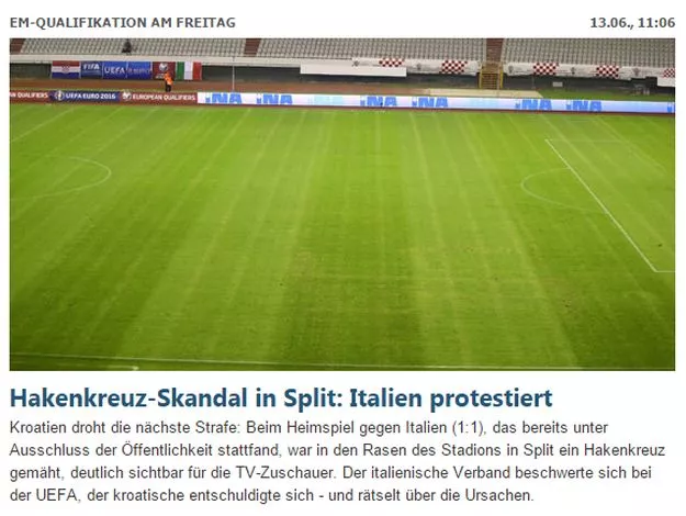 Incident na Poljudu privukao je pažnju cijelog svijeta. Svastika ucrtana na travnjak, vidljiva tokom susreta, privukla je mnogo više pažnje nego nogometno nadmetanje Hrvatske i Italije, prenosi novinska agencija Patria.