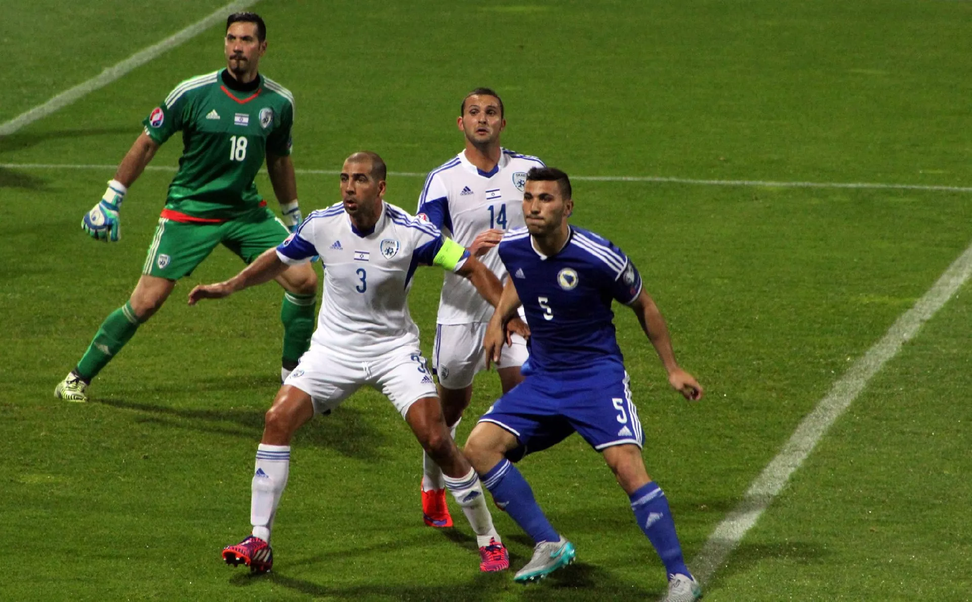 21:30 Sami kraj prvog poluvremena obilježila su čak tri gola, prvo je poveo Izrael, a zatim golom Edina Višće izjednačavamo. Ubrzo je sudija svirao penal za BiH zbog igranja rukom izraelskog igrača. Odgovornost je preuzeo kapiten Edina Džeko i poveli smo 2:1 u sudijskoj nadoknadi.
