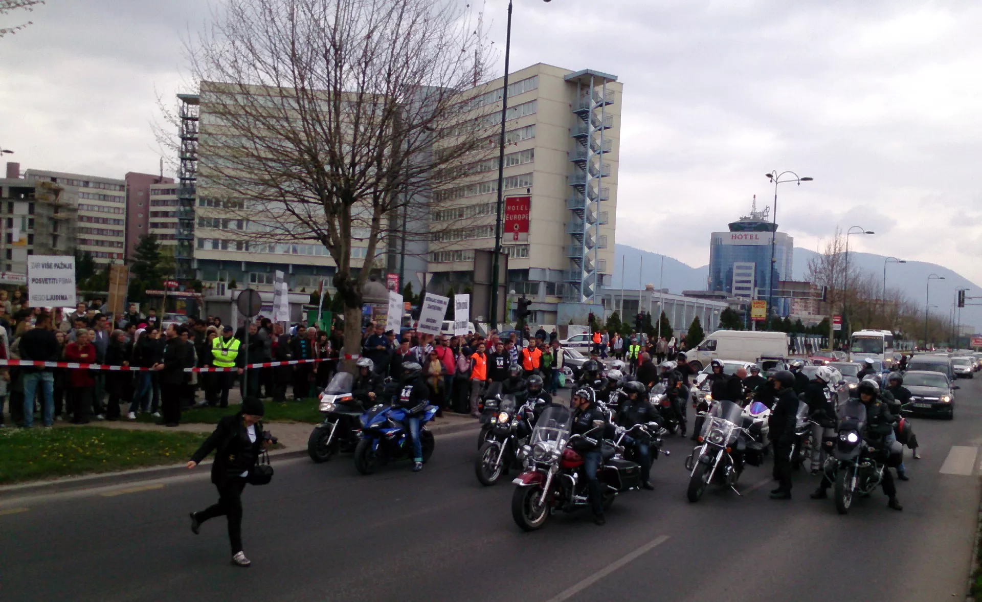 Protesti još uvijek traju, ali nije bilo blokade saobraćaja. Samo u jednom trenutku članovi sarajevskih moto klubova su u počast Havi Dovadžija zaustavili svojim motorima saobraćaj, ali je on ubrzo nastavljen, javlja agencija Patria.