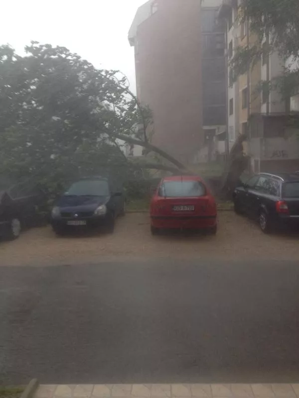 U Doboju se prije pola sata iznenada dogodilo veliko nevrijeme. U nekoliko minuta jak vjetar je iščupao veliki broj stabala u naselju Pijeskovi, a led i kiša su oštetili desetine automobila parkiranih ispred zgrada ili kuća u ovom gradu.
