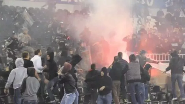 Tokom nogometne utakmice Partizana i Crvene Zvezde u Beogradu u subotu navečer navijači Crvene zvezde su zapalili albansku zastavu.