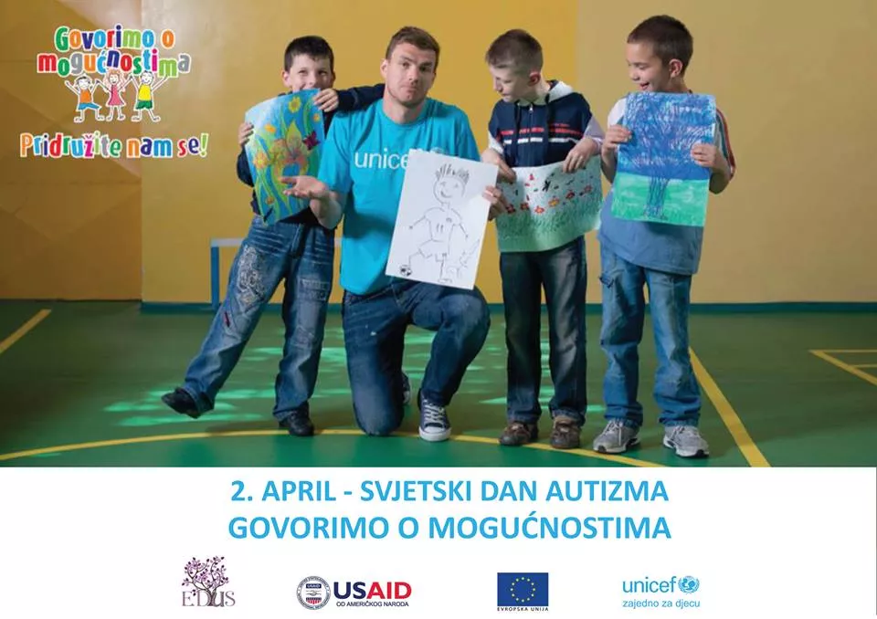 Edin Džeko, bh. nogometni Zmaj i napadač Manchester Citya kao ambasador UNICEF-a slikao se za kampanju "Govorimo o mogućnostima - pridružite nam se" povodom 2. aprila Svjetskog dana autizma, prenosi bh. novinska agencija Patria.